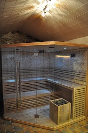 Welness ruimte met ruime familiesauna en infraroodsauna